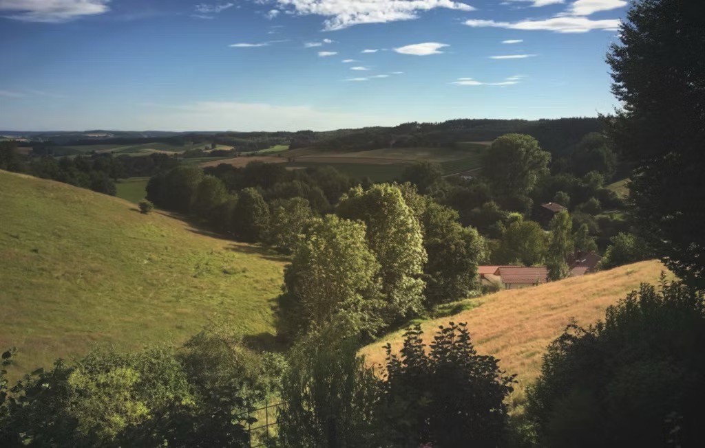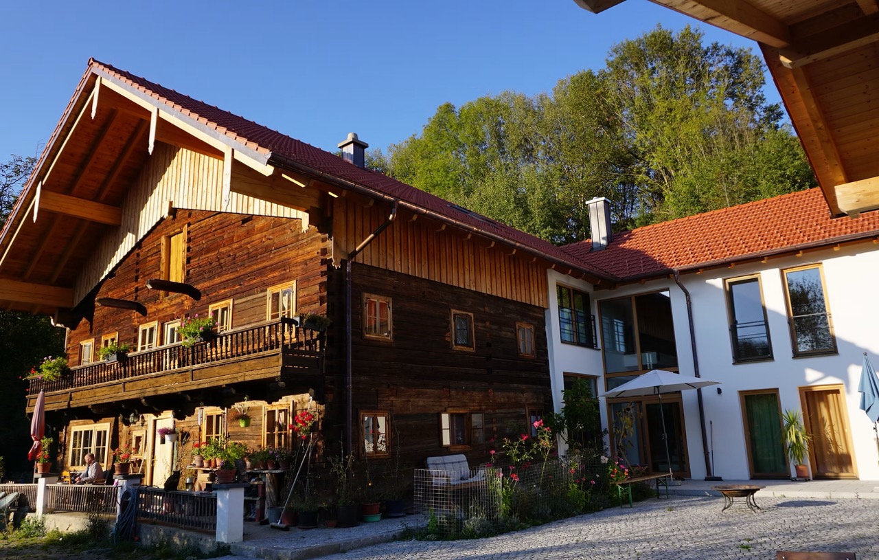 Es geht in das Neue Welt Haus, ein 300 Jahre alter Hof im südosten Bayerns