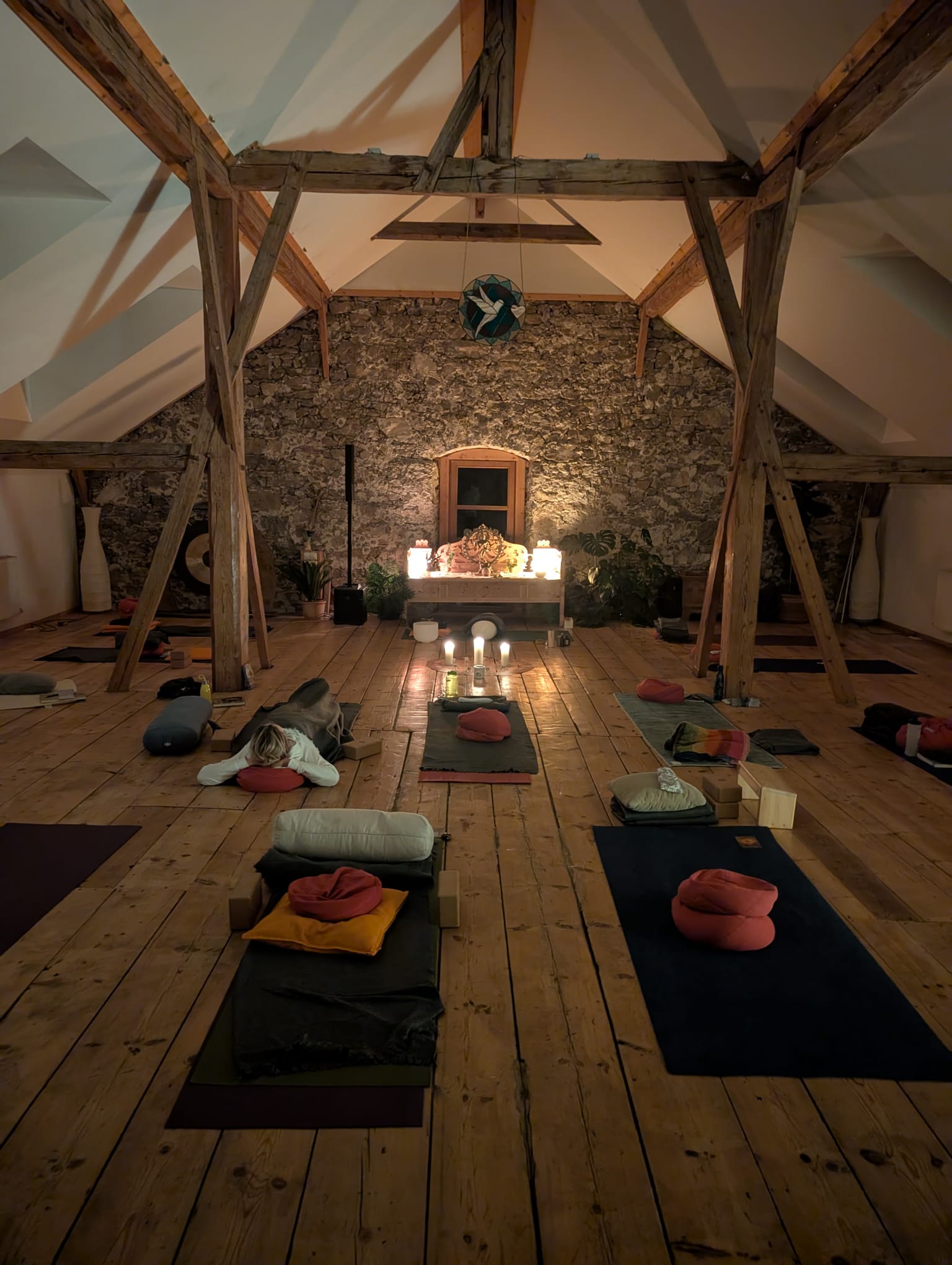 Angeboten wird somatisch-inspiriertes Yoga (wechselnd in Yin und Yang-Stilen), geführte Meditation und Atemarbeit, wie auch Trance Healings (*) im Liegen – regenerativ für das Nervensystem und angepasst an individuelle Bedürfnisse.